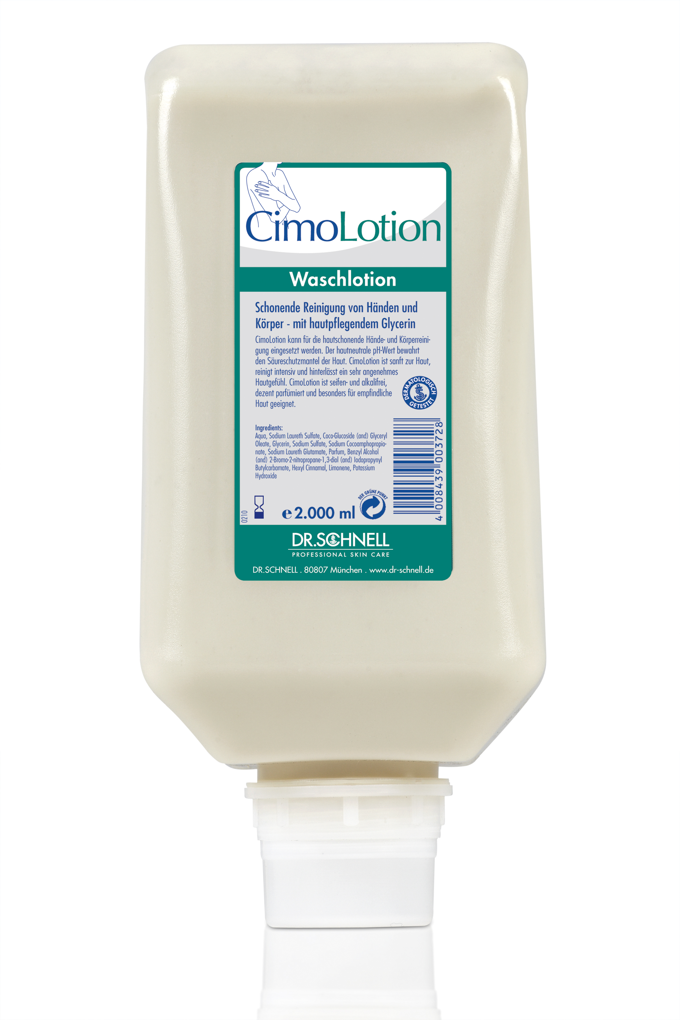 CIMOLOTION für die hautschonende Hände- und Körperreinigung in Sanitär- und Duschräumen. Der hautneutrale pH-Wert bewahrt den Säureschutzmantel der Haut und hinterlässt ein angenehmes Hautgefühl. CIMOLOTION ist frei von Seife und Alkalien und mit einem dezenten Pflegeduft ausgestattet.